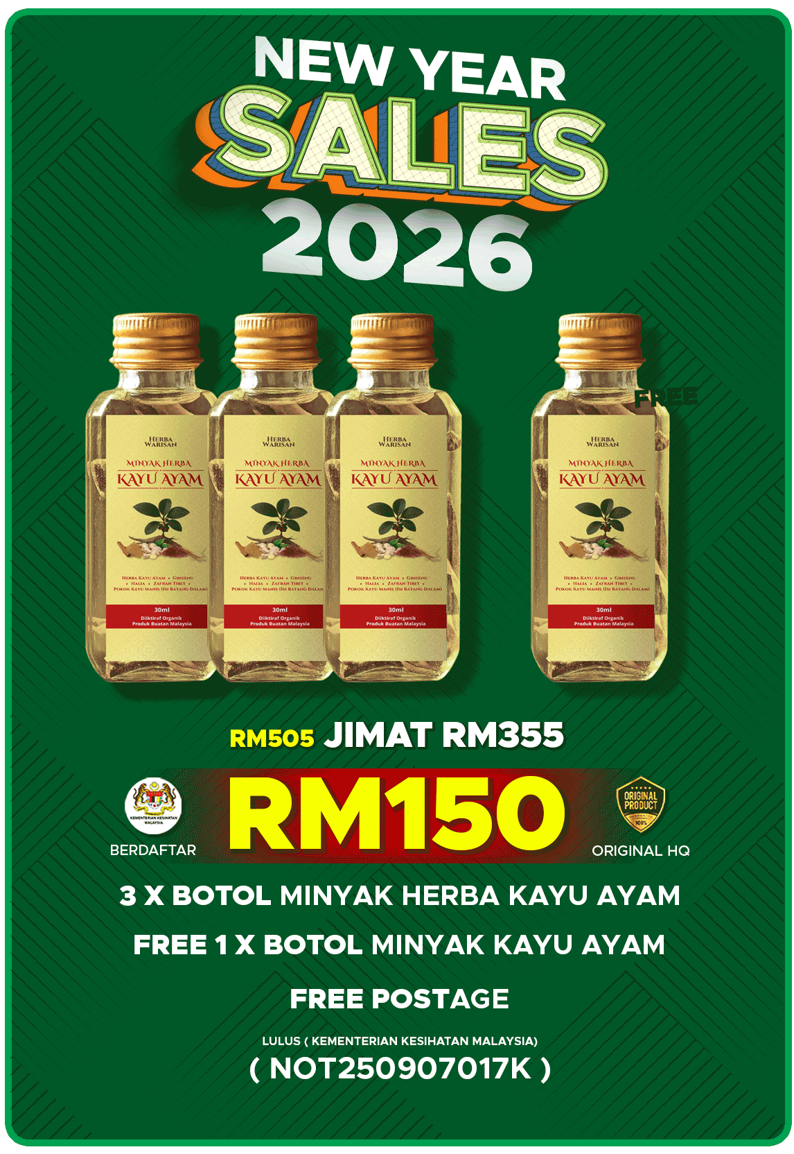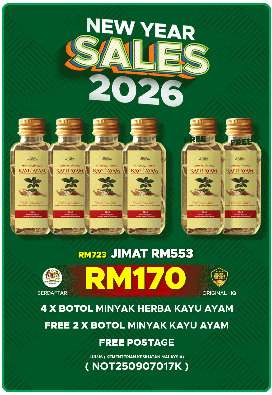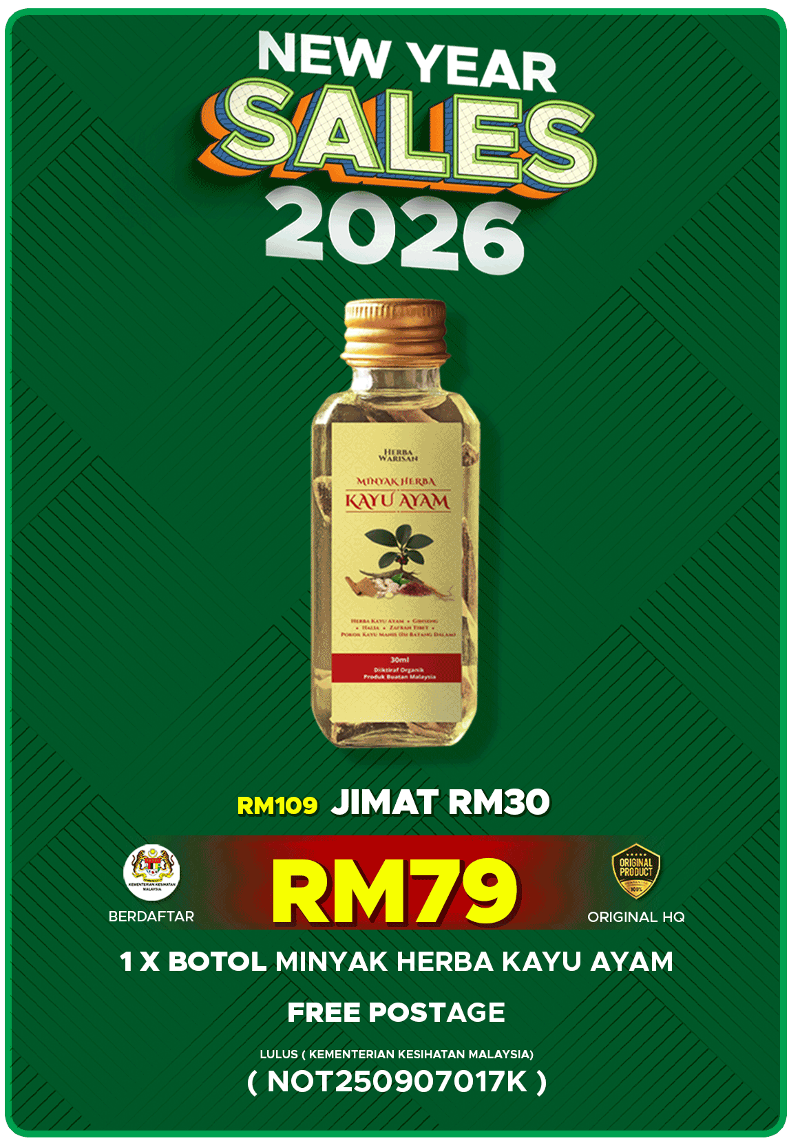Minyak Herba Kayu Ayam Terbukti Selamat Dan Tiada Bahan Kimia LULUS KKM (NOT250907017K)