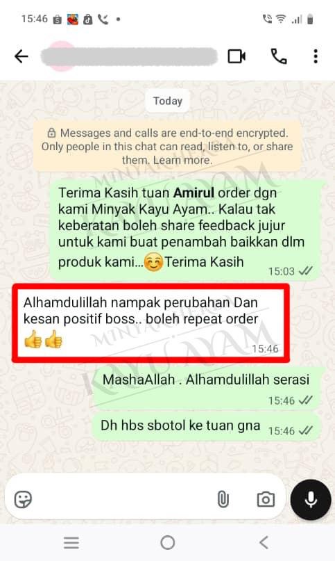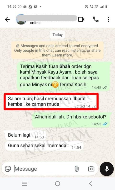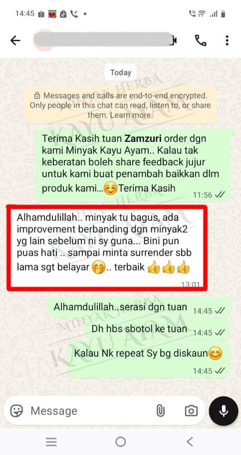 LIHAT APA KATA PENGGUNA MINYAK HERBA KAYU AYAM